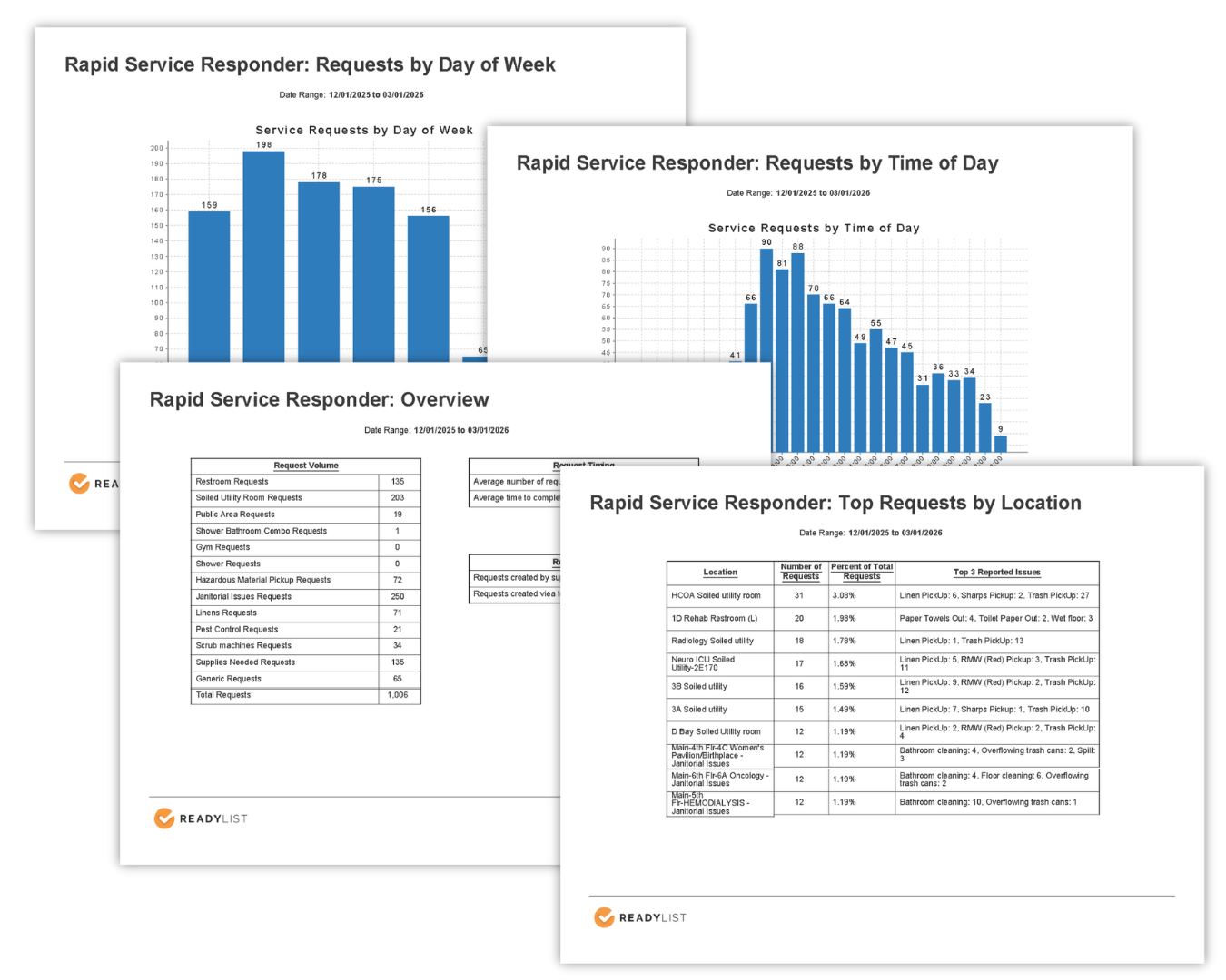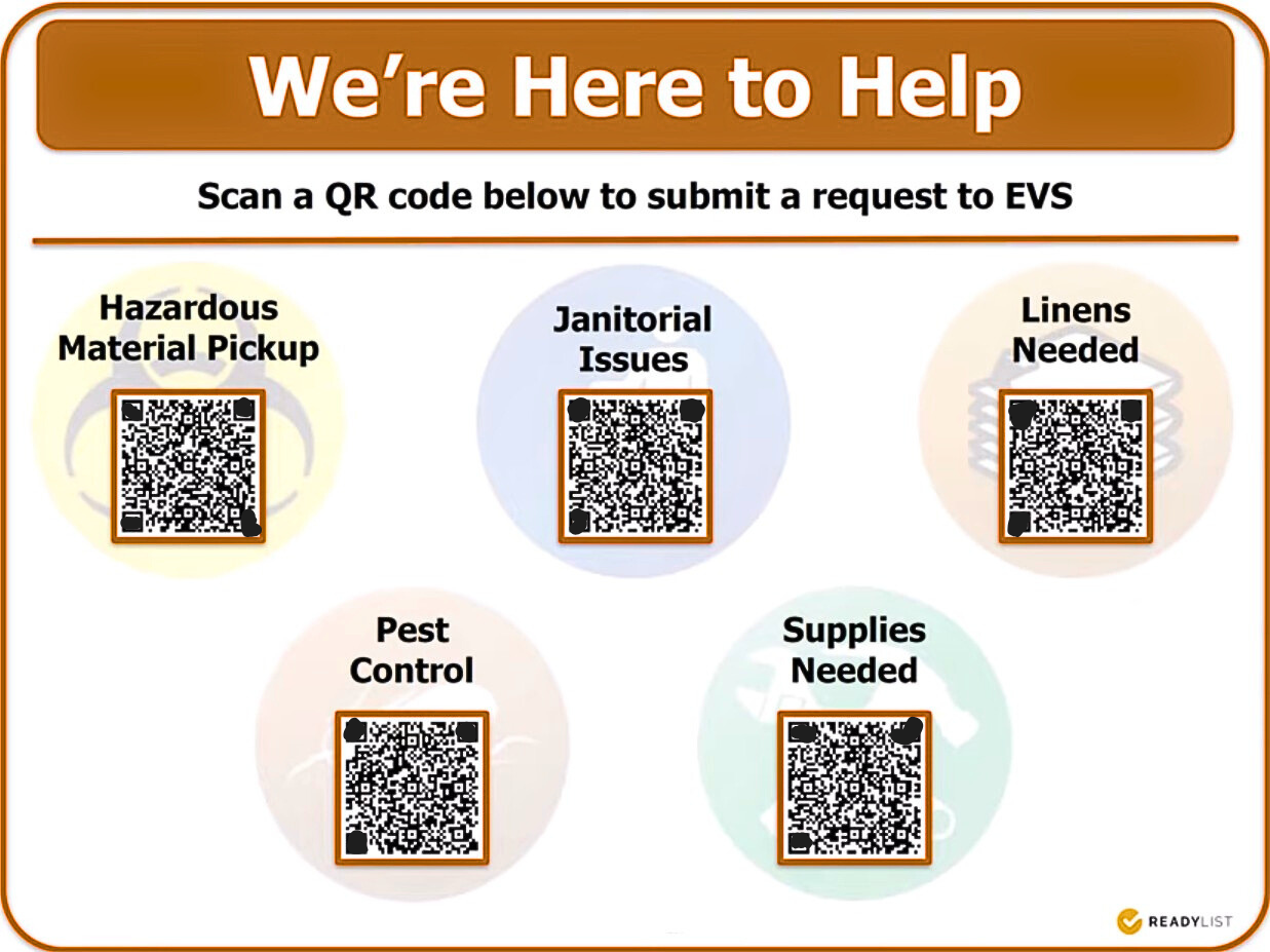 The ReadyList QR code posters provide an easy-to-use tool for our staff to request service and assistance. Having one, mobile-enabled platform to submit and manage requests supports a streamlined workflow and productivity across our 973-bed health system.